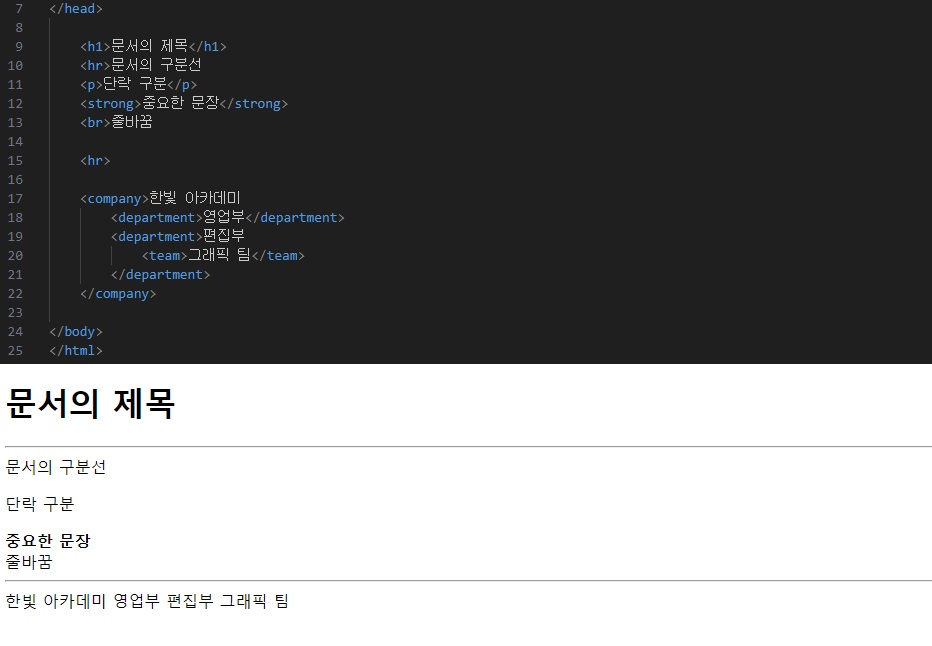 | <p> ~ </p> | 빈 줄을 만들어 다음 단락으로 넘어감 |