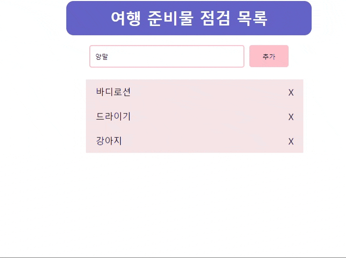 자바 스크립트를 이용하여 나만의 여행 준비물 리스트 목록을 만들어 보았다.