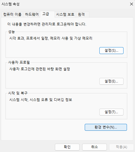 일단 설치하기 앞서 설정된 환경변수를 지워보자.