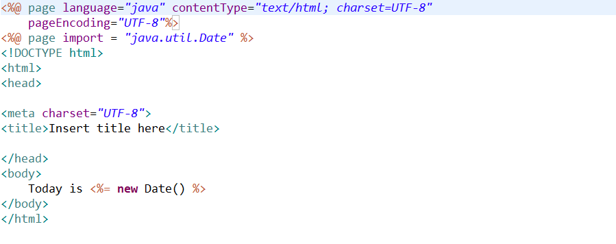 여기서 language / contentType / pageEncoding 속성은 jsp파일을 생성하면 자동으로 설정되어 나오는 항목이다.