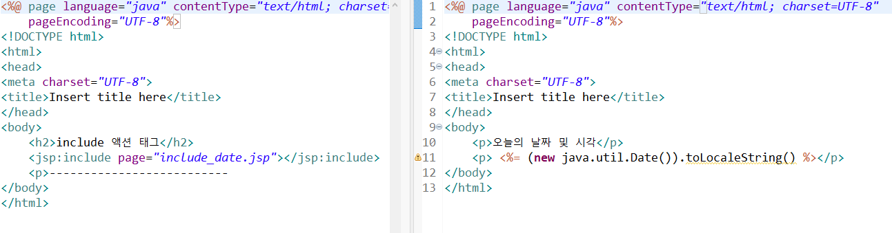 | <jsp:include ... /> | 외부 페이지의 내용에서 결과 값을 가져와 해당 페이지에 삽입하여 출력한다. |